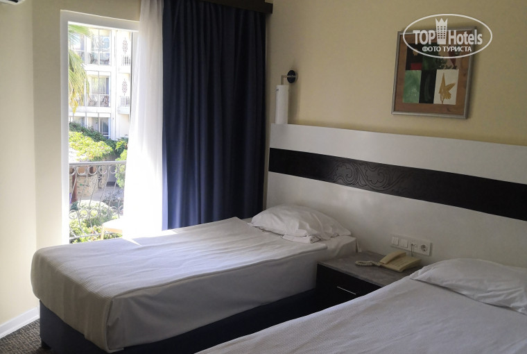 Летели туда авиакомпанией Туркиш эйрлайнс, всего 3,5 часа, без задержек, на борту кормили и давали напитки, обратно летели другой турецкой компанией Южный ветер, кроме воды ничего не дали и была задержка примерно на 2 часа. Но всё впечатление от отдыха смазало заселение в отель. Прямым текстом на ресепшен озвучили сумму за хороший номер и предложили выбрать. Сначала поднялись в номер на третьем этаже в корпусе С, в номере что-то ужасно гудело, как в пыточной, естественно, вернулись и попросили другой . Другой номер, который, видимо, предлагают всем, без балкона, маленький и с крошечным санузлом. Снова вернулись на ресепшен и после долгих неприятных разговоров, когда персонал понял, что мы доплачивать ничего не будем, так как уже за всё заплатили туроператору, нас обещали переселить наутро. Пришлось переночевать в этом эконом-номере. Утром после завтрака получили ключи от номера стандарт на втором этаже корпуса С. В этом номере нас всё устроило, было чисто, всё работало, нормальный санузел, тихо, вид во дворик и крышу бассейна, ловил вай фай и наконец-то начался отдых. Если бы не нервное заселение, оценка могла быть повыше. Территория отеля небольшая, но везде чисто. Питание не очень, но голодными не останетесь. Место на улице занимали заранее, в столовую лучше приходить к открытию, за неделю два раза была кусочками говядина, а в основном курица, субпродукты, невкусная рыба. зато много зелени, огурцы, помидоры, маслины, оливки, вкусные баклажаны. Из фруктов спелые арбузы, дыни, мандарины, яблоки. Из десертов пирожные, Моментально расхватывали рахат-лукум и халву. До пляжа минут пять пешком, красивая набережная, есть площадка для занятий физкультурой, прекрасное море, мелкая галька, лежаков достаточно, на пляже в баре только напитки. Сестра с мужем отдыхала в этом отеле в 2023 году и рекомендовали его нам, но за два года всё изменилось. Экономическая ситуация влияет не лучшим образом на сервис. Но, в целом, отдохнули нормально, с погодой очень повезло, солнечно, температура воздуха и воды 25-26 градусов.