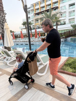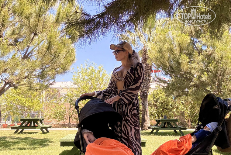 Последний раз отдыхала в Турции в 2020 году. Потом беременность/роды и тд, долгий перерыв получился. И вот наконец выбрались с детьми. Долго думала, брать ли детские коляски. С одной стороны, не очень хотелось их тащить с собой. Но что-то мне подсказало, что лучше перестраховаться и взять) слава Богу, что я послушала внутренний голос, потому что маленький дети; это всегда вероятность того, что вам придётся таскать их на руках по территории отеля. В общем, мой совет тем кто сомневается: берите коляску и будет вам счастье. Порой мы даже не ходили в номер на обеденный сон, потому что дети могли спокойно подремать в коляске. Теперь по отелю. Питание; наверное, самое лучшее, что я видела в предыдущих своих поездках. Очень понравилось что Аля cart рестораны работают без всякой резервации. Сперва мы ходили в главный ресторан, но пока с детьми пройдёшься по рядам с едой, и сам устанешь, и дети уже перебивали аппетит. Поэтому для нас стало спасением как раз Аля карт рестораны. Зашёл, по QR-коду посмотрел меню, заказал, практически несколько минут и у тебя уже готовые блюда на столе. Очень и очень удобно. Мороженого огромное изобилие. Везде Морозильные камеры, выбор огромный. По алкоголем; нареканий нет никаких, всё отлично. Я пила коктейли, муж виски с колой. Пляж; мы редко На него ходили. Ну тем не менее в целом неплохо. Нас подвела дождливая погода, прилетели 30 мая, два дня шел дождь. Поэтому все тусовки проходили в самом отеле. Внутренний бассейн крытый был переполнен. Хлоркой пахло знатно. Мы не рисковали туда ходить. Наши дети закалённые и купались холодных бассейнах. И вообще даже в начале июня вода в бассейнах была очень прохладная. По мероприятиям и анимации: шоу и для детей и для взрослых просто отличные. Для деток проходило шоу с огнём, караоке, минидиско; всё как обычно. Пенная вечеринка, перед отъездом побывали на концерте стаса Михайлова. В общем отель рекомендую, особенно если вы едете отдыхать с уже более взрослыми детьми или одни, это вообще будет супер отдых. От аэропорта до отеля ехали примерно полтора часа, даже чуть больше. Пишу эту информацию, потому что я ожидала что дорога займёт меньше времени. С нашими маленькими детишками это было слегка утомительно. Надеюсь, мой отзыв будет полезен тем, кто едет с такими же малышами. Конечно, рассчитывать на полноценный отдых не приходилось, но мы и принимали это сразу. В любом случае отдохнули отлично, хоть и были с малышами