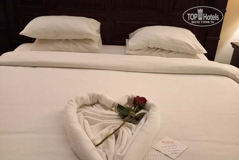 Аудио-отзывМоя любовь Ramada. Я очень долго выбирала как отметить свой прекрасный возраст( юбилей) и я не ошиблась!!!. Заранее бронировали номер deluxe с видом на море.При заселении нам в подарок дали пенхаус мы были шоке но
