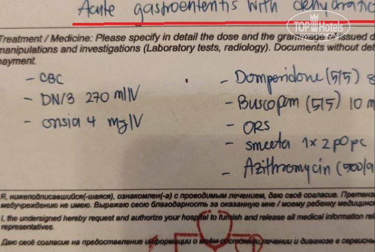 К сожалению, нас это не спасло, на 7ой день пребывания заболели мама и сын, а затем и мы с дочкой. Проблема очевидно в самой столовой отеля где люди завтракают, т.к. больше ничего от отеля мы не потребляли. Кроме того, после больницы сын пару дней ел супчики из русского кафе и чувствовал себя нормально. Но как только он позавтракал опять в столовой через 3 часа его начало рвать. По информации от гида в день заболевает около 22 человек только от нашего туроператора, отелю о ситуации известно, но ничего не предпринимается. Прикладываю справки от врача, детям пришлось делать капельницу. Инфекция очень сильная, мы продолжаем болеть даже вернувшись домой.