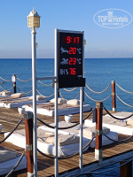 Пляж: Народу было много, но лежаков всем хватало, есть зона +16. Лежаки стоят очень плотно, немного не удобно, но не критично, но возможно в сезон это бы напрягало. Море чистое, песок- галька. Вход в море галечный, без специальной обуви НЕ очень!!! комфортно заходить и выходить (всегда выбирали отель, где пологий спуск и песок), но есть пирс. Это единственный для меня был минус (плаваю плохо, поэтому с пирса не плавала). На пирсе красота - бар, лежаки, столики и стульчики, можно посидеть и посмотреть вдаль на бесконечное красивое море.