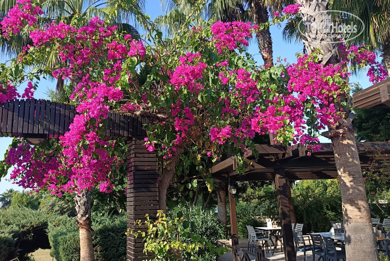 Территория: площадь отеля большая, убрана, все в зелени. Есть бассейн с горками, детскиий бассейн, ещё один бассейн и крытый бассейн с подогревом. Детский клуб, батут, детская площадка. На территории много скамеек, гамаки. Кругом пальмы, цветы. Есть футбольное поле, теннисный корт, минигольф. Есть магазин со всем необходимым и небольшим выбором одежды.