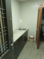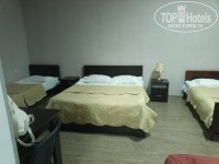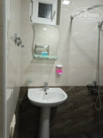 В нашем номере порожки из комнаты и в ванную высотой несколько сантиметров, будьте внимательны, чтобы не поотбивать пальцы. В ванной как обычно сыро, но запаха затхлости нет. Кстати уличный фонарь в ночное время через окошко в ванной подсвечивает как раз круг унитаза, свет можно не включать.