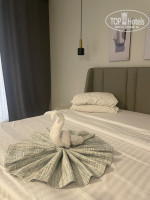 -очень странная планировка ванной комнаты! Двери прозрачные из матового стекла. Раковины две и они не за дверью. Полотенца висят внутри! душевой… в семейном номере это очень неудобно! Нельзя закрыться и спокойно умыться, сходить в туалет и тп