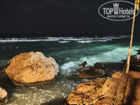 После прошедшего шторма так вообще, порвался канат,удерживающий понтон на поверхности, теперь понтон шатается во все стороны. Очень нужен стационарный пирс,как у соседнего отеля.