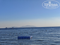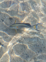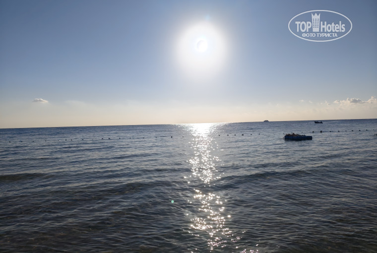 2 входа на мелкий пляж, тот,который ближе к бару в углу,лестница резко заканчивается,кому то может быть неудобно. Чуть ближе к центральному бару лестница поудобнее и вход в само скорее более пологий и менее каменистый. По глубине - вплоть до буйков +- по пояс,в зависимости от роста. Очень много хирургов,а так же - ежи в каждой ямке. Поэтому,лучше в корралках,чтобы поберечь ноги. Есть небольшие квадратные понтончики,на которые можно запрыгнуть и позагорать. Я отталкивался от земли и плавал горизонтально воде в маске,мутновато,из-за того что многие ходят и стоят на земле,но рыб видно, по утрам видел ската,проплывающего мимо.