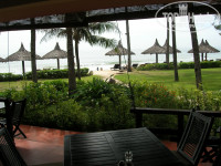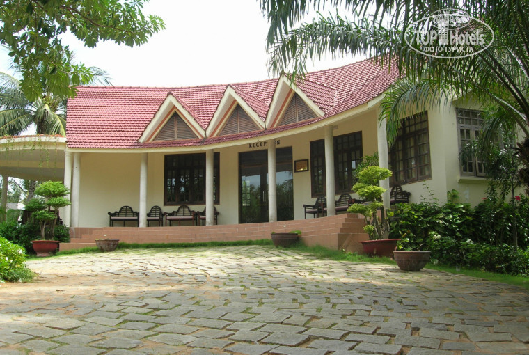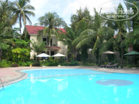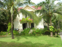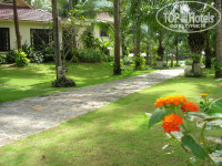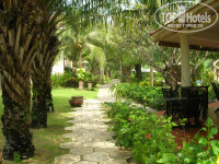 Имеет вытянутую прямоугольную форму: ресепшен расположен максимально близко к дороге, а все домики – по обе стороны от дорожки, ведущей вглубь, к морю. Между домиками газон, деревья, пальмы, есть декоративные статуэтки. Стоят «водяные» вазы с лотосами. Все ухоженное, поливают каждый день.