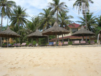 Небольшой, лежаки все были заняты только в один из выходных дней, когда в отеле было много постояльцев. Море близко. На мой взгляд, отель имеет удачный выход на пляж, т.к. он достаточно далеко от рыбацкой деревни и не слишком близко к концу бухты, где камни, и куда волнами «сносит» мусор. Как я поняла, особенность моря в Муй не –это то, что волны бывают практически постоянно. Отсюда популярность места у серферов и кайт-серферов. Мне волны доставляли огромную радость, т.к. я каталась на пенопластовой доске. С детьми, возможно, стоит выбрать курорт с более спокойным морем. Или плавать в бассейне.