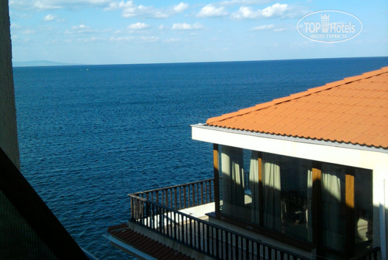 Из всех 3*, которые нам предлагали по цене 760 евро за двоих (перелет Минск-Бургас-Минск+14 ночей+трансфер+страховка) -наш оказался самым лучшим. Хотя бы потому, что стоит на скале, и мы могли круглосуточно наслаждаться чистым морским воздухом. Во время шторма, стоя на балконе, даже можно было почувствовать капельки воды.