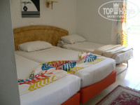 Номера в отеле тесноваты, но общем нормально. Только, по возможности не соглашайтесь на бунгало и первый этаж. Бунгалом здесь называют одноэтажные корпуса. Вместо балкона у вас будет площадка на уровне с землей и вы не сможете открыть балконную дверь чтобы проветрилось и уйти. И вообще, будет проходной двор. Второй и третий этажи лучше. Кондиционер в номере общий. Включается только вентилятор и ревет ощутимо. Но по вечерам холодно и он не нужен.