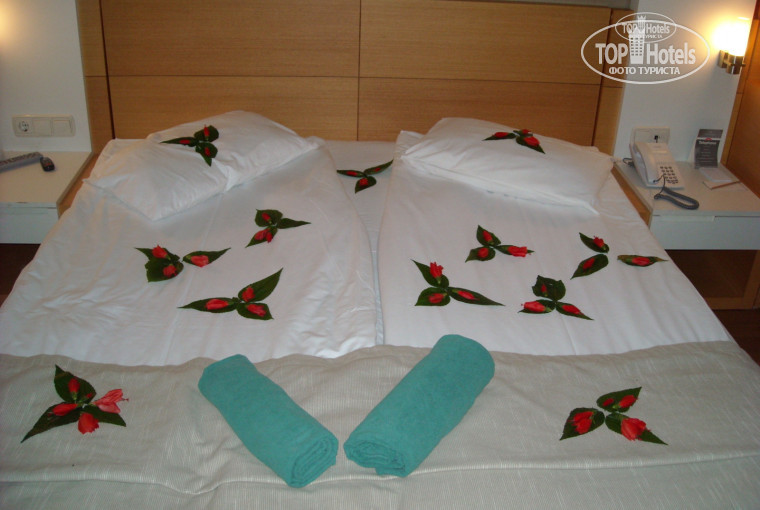 Обслуживание очень доброжелательное и не навязчивое в самом отеле, чего не могу сказать о ювелирном магазине и хамаме, куда нас вывозили. Оставивв пару раз горничной доллар в номере каждый день была практически идеальная чистота и полотенца меняли каждый день, (хотя мы их не бросали)-это было очень удобно, учитывая, что в бунгало на первом этаже влажность была безумная... не сохло ничего абсолютно... или сохло по 3-4 дня(( но это уже не к отелю претензия.. На ресепшене и правда вне сезона нет русскоговорящего персонала.., но по английски и жестами или при помощи гида все вопросы моментально улаживали, осоенно помогла милая девушка Хазан в гест релейшн.. и от комаров аэрозоль у нее попросили, и халаты и многое другое. В пабе регулярно нам заваривали очень вкусный турецкий кофе, рекомендую попробовать, и хотя я не фанат этого напитка мне понравилось. В ресторане офицанты есть русскоговорящие, причем не только быстро поймут и принесут, но и настроение шуткой поднимут.