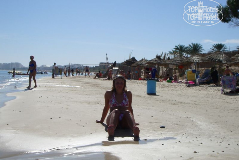 У отеля собственный песчаный пляж. Лежаки нужно брать утром самим, хотя можно попросить и работников пляжа (за услуги принято давать 1-2 динара). Лежаки конечно своеобразные, сидячего типа, и спиной на них уже не позагораешь. Медуз мы встретили только 2 раза и то мертвыми и выкинутыми на берег. Есть различные платные развлечения, типа водных скутеров, всяких бананов, парашюта. Местное население на пляж особо не пускают, для этого на пляже целый день дежурят Security, поэтому представители местного населения прогуливаются вдоль пляжа (торгаши и ловеласы). Если Вы не собираетесь ничего покупать, не рекомендую брать что-то в руки, иначе может дойти до драки. Знакомым русским женщинам пенсионного возраста тунисские ловеласы предлагали определенные услуги за деньги, которые по их словам, они выполняют лучше, чем русские мужчины.