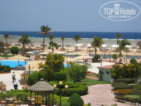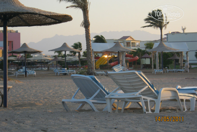 общее впечатление при въезде в отель - восторг: виллы, декор сада, четыре бассейна, горки, бесплатное джакузи в течение всего дня, шатры, простор, загородки от ветра, большой ресторан, ресторан на берегу, бары везде, тренажерный зал бесплатно целый день! заселились за 10 минут, с улыбками, шутками. доплатили 20 дол. за отличный вид на море и бассейны. предлагают "платиновый пакет" за 30 дол. с человека на весь период, включает: номер люкс, корзинка фруктов, бесплатная поездка в хургаду, час интернета, проживание в номере в день отлета бесплатно до вечера и еще бонусы.чемоданы довезли на машинках, в номере - лебедь весь в цветах - супер! каждый день меняли постель и хорошо убирали - за 1 дол, 1 фунт, 1 конфетку или совсем без ничего - все равно хорошо. в бассейны плавный вход, очень удобно. один - детский, 3 горки во втором, в третьем - аквааэробика, воллейбол и т.д около четвертого - полный релакс. бассейны соединены подобием водопадов.искусственная речка , на которой строится новый ресторан титаник с морской кухней. работы идут так тихо, что даже не скажешь, что стройка. номера - большие, новая импортная сантехника, биде, большая душевая. все работает, всегда горячая вода. все номера с террасами, вид изумительный с любой виллы. при большой территории близкая доступность ко всему, при этом - просто огромный пляж, кстати песчаный, с небольшой лагуной с краю. вода в мае показалась холодной, отлив-прилив каждый день, много медуз. по приезду сильно обгорели - купались без маек, но при отеле есть аптека.что касается питания, для меня огромный плюс - свежее, разнообразное, всегда доведенное до готовности, всегда есть, рыба, мясо, курица, фрукты, овощей -море. с выпечкой и тортами даже фотографировались на память. официанты угодливые, вообще все улыбаются, а если пару арабских слов, то отношение как к родным. не хочу пересластить отзыв, но для меня этот отдых не имел минусов. автобус до хургады каждый день за 8 дол. в обе стороны. по любой просьбе к ресепшену- бегом прибегают помочь. сейф бесплатный. заполненность отеля была всего 25%, при этом анимация работала на все 100%. живая музыка, шоу 1001 ночь, бразильский балет, художественные оригинальные постановки, арабский танец, файер-шоу,номер с битым стеклом(душа замерала