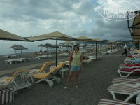 Зонтики в 4 ряда. Первые 2 ряда от моря - маленькие, типа плетеных корзинок, 2 последних ряда - более широкие. Места есть ВСЕГДА. Никакой гонки за лежаками нет. Пляж очень-очень мелкая галька, вход (и дальше)крупная галька. Единственный недостаток - единственная лестница в море с пирса - так как барутовский пирс единственный на ближайшие 4-6 отелей, частенько возникает затор при сходе - подъёме из воды. Хотя охранники видя такое, быстро прибегают и прогоняют людей с браслетами (в самом отеле безбраслетная система).