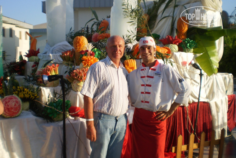 Отдыхали вдвоем с 9 по 20 мая . Приехали из СПб от турфирмы "Нева". Очень повезло , что приехали после 9-го, так как люди отдыхавшие на "майские праздники" очень жаловались нам, что не повезло с погодой, с едой, с анимацией. Действительно отель начал раскручиваться только с 13-го мая. Нам сравнить было с чем. С 13 мая кардинально изменилась концепция питания, алк. напитков, анимации, отношения персонала. На ужин ходили всегда среди первых, но в очереди не толкались, брали закуски и всего понемногу и садились за столик. В качестве рекомендации: столик на двоих для нас "резервировал" официант Мехмет (просто ставил два бокала пива и убирал четвертый стул) за ежевечерний доллар. За эту ежедневную денежку он оч. быстро приносил также любые напитки во время обеда и ужина. Номер мы тоже без доплаты получили фемили в середине корабля на третьем этаже. Убирались хорошо, меняли когда и что было положено (тоже оставляли по доллару). Совет: если будете покупать в последний день сладости смотрите на дату изготовления- мы купили со скидкой в большом маркете напротив и они оказались просрочены. В целом отдохнули славно, уезжали в хорошем настроении, все понравилось. Произвело впечатление празднование 5-летия (фотки прилагаю)- кулинары показали свое искусство в полном объеме.