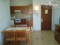 Номер хороший,как в 2-х комнатной квартире,все чистенько светленько. Ванная чистая. Правда вода очень хлорированная. В номере есть кухня с плитой и всей посудой. Мини холодильник. Уборка производилась каждый день включая смену белья и полотенец.Вид был на бассейн и немного моря. До моря идти 5мин. До пляжа Нисси идти мин 15,но мы сняли велики (по 30евро за один).Свой пляж в виде бухточки,но каменистый вход. Вход расчищен по краям.Для детей прекрассный лягушатник,где всегда теплая вода,а вечером прямо горячая.