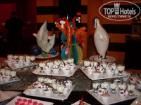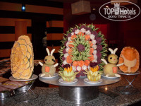 Ресторан тоже понравился и по интерьеру и по качеству еды. в принципе еда не сильно отличается от еды в других отелей, но дыню, апельсины мы ели постоянно, да и основные блюда иногда были достаточно вкусными. Особенно выделялись украшения на столах из фруктов и овощей. Голодными никто не остался. Кстати слышал что были отравления в отеле Sanny Days, тут ни у кого ничего подобного не было.