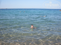 Пляж песчанный, вход хороший. Море чистейшее. На прокат бесплатно дают ласты. Лежаков хватало всем (но видимо из-за того что ремонтировали 2-3 корпуса, поэтому народу было меньше). В баре у бассейна с 12-17 можно бесплатно есть мороженое, пиццу, картофель фри. На пляже покупали арбузы по 3$ за 2 куска каждый день, были вкусные и сочные. Говорят правда что их тут бесплатно дают в середине-конце лета.