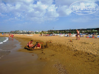 Сам пляж песчаный. Лежаки под тентами находятся не прямо у кромки моря, а метрах в двадцати-тридцати. Можно назвать пляж шикарным (в смысле пространства). Для Golden Beach и Golden Coast предусмотрены разные пляжи, но все отдыхают вперемешку – кому где больше понравилось. Имеются раздевалки (по три штуки на каждом пляже), там же открытый душ. Туалеты с тыльной стороны пляжного бара.
