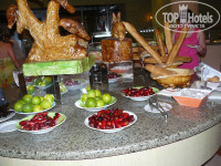 Питание довольно скромное, но в целом,думаю, соответствует 4-ке в Египте (по словам других), много вкусной выпечки и сладостей, по утрам вкусные пончики с различными джемами и шоколадом, кофе, правде не очень, а так в обед в основном курица и рыба(очень вкусная),морепродукты, иногда мясные блюда), фрукты в основном не очень хорошие(в смысле там в основном, одни и те же были - финики и бананы зеленые, иногда давали какие-то фрукты, похожие на груши, только невкусные), но мы покупали на рынке в городе манго и гранат.