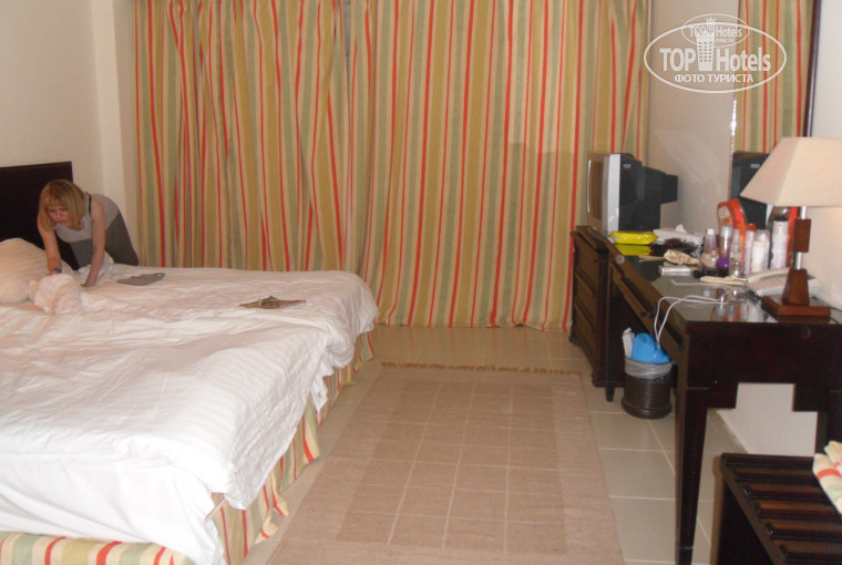 Отдыхали вдвоем с сестрой в этом отеле в июле.Впринципе хороший отель.Номера приличные,достаточно уютные,уборка осуществлялась каждый день.Что же касается питания там,-есть и пить практически невозможно!Единственное что понравилось это выпечка.Мясо отвратительное,если вообще это можно мясом назвать.Сосиски как туалетная бумага,картошка водянистая и безвкусная вообще,можно есть рис и макароны,и картофель фри))рыба тоже особого восторга не вызвала!В рестораны (Итальянский,Восточный и рыбный)можно даже и не ходить,там все точно такое же,ничем не отличается!Пиво которое разливное,оно безалкогольное,оно отвратное.Единственное более менее это из бутылок пиво.Можно пить коктейли,вроде нормально.Только алкоголя они не жалеют,лучше предупреждать,по-типу по-меньше виски и по-больше колы))Сама вода со специфическим запахом у них,что в бассейне самом,что в номере.От нее волосы как мочалка становились и безумно сушило кожу!Персонал неплохой,очень даже милый и приветливый,с этим проблем не было.Аниматоры только плохие,скучно было вечерами,туда если ездить,то лучше семьями,тусовщикам там делать нечего!Там строится сейчас аквапарк сейчас,возможно будет по-веселее!Нас зазвали на пенную вечеринку,которая проводилась на пляже,стоила она 15 долларов с человека.Во-первых,пришло только человек 30 от силы,а говорилось что билетов много продалось и будет весело.Аниматоры, повторяюсь, плохо работают,у них было все не подготовлено,стоял маленький бассейн,не было ни аппаратуры еще,ни музыки,ни пены.Выступали сами аниматоры,с неподготовленными танцами))Мы просто просидели там 1.30 часа в ожидании чуда уже наконец,только ничего интересного и завораживающего мы там не наблюдали.Так что не ведитесь на всякие их вечеринки!По утрам в одном из бассенов,где собственно находился бар,проводилась зарядка этими же аниматорами.Каждый день одно и тоже...3 возлюбленных песенки и однообразные танцы))Сама территория огромная!Это радовало)Там достаточно красиво,5 бассейнов,из них 2 с "аля морской водой".К морю подход не очень удобный,там кораллы,без резиновых тапочек нельзя!И кстати на территории бассенов тоже желательно ходить в обуви,так как много битого стекла!ногу я пропорола там уже,будьте внимательны!На экскурсиях мы правда не были,не стали рисковать.Потому что все заранее предупреждали,что они отвратные.Нас поселили в корпус,который находился за пределами самой развлекательной,отдыхающей зоны(где пляжи,бассейны,рестораны).Нам чтобы туда добраться нужно было ездить до ресепшена на автобусе.Но не пугайтесь,это даже лучше.Там более спальный райончик такой,очень тихо и спокойно,не слышно ни гулянок,ни музыки,ни всего такого,чем нежели там!Автобус ходит каждые 10 мин.и по-времени ехать минуты 3,не больше!В магазинах там дороговато все,лучше конечно выбраться в город и попасть на рынок!Цены отличаются!А так все отлично,мы остались довольны!!!