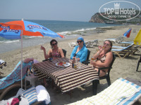 После ужина делать в отеле нечего,анимации в принципе нет. Дискотека тухлая. Но в первый день мы сильно устали и рано легли спать. Утром нас ждало новое потрясение-это ПЛЯЖ! Хочу сказать,что нас не напрягали ступеньки,ведущие на пляж(мы решили они полезны для здоровья). Напряг сам пляж. Во-первых-толпа народу из 2-х отелей,лежаков не хватает,матрасов нет,нет даже душа,только кранчики для мытья ног,далеко не заплывешь,огорожено буйками,посередине большая плита.Я уже не говорю об отсутствии столиков для напитков. В последствии мы поняли,что их вообще в принципе не нужно. Бар находится в самом начале пляжа,напитки выдают в маленьких пластиковых стаканчиках по 2 на человека. Если ты не пришел в 7 часов утра и не занял место поближе к бару,то бегать в такую даль за пивом не захочется совсем. Решили с подругами пообедать в этом снек-баре:это какой-то ужас! Народу-толпа(опять же из 2-х отелей). Столиков свободных нет. Если место освобождается,стол долго не убирают. Везде очередь за не совсем съедобными вещами. Лепешки не вкусные,сухие,шаурма тоже. Я отстояла очередь за пивом,ко мне подошла подруга,так ей указали в конец очереди. Я объясняю официанту что мы вместе-ни в какую. И вообще у меня было такое впечатление во время отдыха,что это мы что-то должны работникам отеля,за то что они нам продали путевки,а не наоборот. Короче больше на этом пляже и в этом баре мы не появлялись.