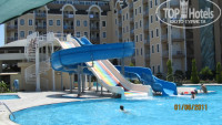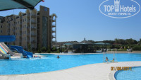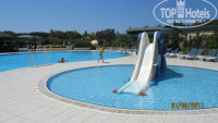 Территория отеля. Вообще в описании фотографии уже не совсем актуальны. Стало больше зелени и цветов. Я поначалу и не узнала отель. На территории - 4 бассейна (2 из них детские), водные горки, которые включали в определенное время, мы после моря попадали на период с 14-00 до 16-00. Есть еще один крытый бассейн. Но мы туда не ходили.