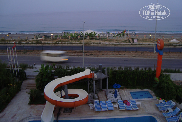 Общее впечатление:Перед поездкой читала отзывы.В день приезда места мне не нашлось.Спасибо девушкам из Чехии приютили меня на ночь у себя.На следующий день,после того,как я написала заявление об этом в Анекс Тур,мне дали двухместный номер.Давала чаевые,поэтому в номере убирали и лебедей на покрывалах выкладывали.Постельные принадлежности не меняли.За время отдыха(7 ночей) я похудела на 4 кг.Очень рекомендую этот отель тем,кто хочет снизить вес.С одним только условием,ЧТО ПИТАТЬСЯ ОНИ БУДУТ ТОЛЬКО В ОТЕЛЕ.Вода и напитки бесплатно и в любом количестве.Персонал в общем очень дружелюбный.Правда,служащий на ресепшен Сердар,после того ,как я отказалась идти с ним на пикник,тут же забыл мое имя и номер комнаты.Он,кстати,с подобным предложением приставал не только ко мне.Мы с девушками потом очень по этому поводу веселились.Территория отеля чистая,пляж убирается каждый день.С одной стороны от отеля жилые дома и с другой тоже.Я в отеле не сидела,ездила на экскурсии.По вечерам ходили в Махмутлар или ездили на рынок в Аланию.Время провела прекрасно,но это чисто моя заслуга.Не стесняйтесь знакомиться с другими отдыхающими,веселее будет.Берите с собой карты.Вечером,как впрочем и днем в отеле делать нечего.Развлекаться придется самим.Зато детям - раздолье!Бассейн целиком в их распоряжении.Согласна - этот отель просто кров над головой.С голоду не умрете.Но я туда больше не поеду и рекомендовать друзьям не буду.