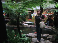 При выходе из самолета в Сингапуре сразу появляется ощущение, как-будто попадаешь в предбанное помещение в бане.Не могу не написать про аэропорт “Чанги” в Сингапуре.Это , как путешествие в будущее.Он очень большой, у него 3 терминала, между которыми ходят поезда без машинистов. На полу везде мягкое ковровое покрытие, есть бассейны с рыбками и пальмами, 5 садов, которые наш новый знакомый австралиец взялся нам показать, чтобы скоротать время до следующего рейса, кинотеатр и много что еще. Есть также зона релакса, где можно полежать под приятную музыку в темных очках, есть зона с компьютерами, где можно поработать. Все-бесплатно. Можно взять бесплатную обзорную экскурсию по Сингапуру, правда, она на английском языке. Везде чистота и красота, нет толпищ народа. Нам попадались такие залы, где на пятьдесят кресел был только один сидящий пассажир (не то, что в наших аэропортах и вокзалах). С удовольствием опять бы предпочла “Сингапурские авиалинии” нашим компаниям, несмотря на техническую посадку в Дубаи и Сингапуре.