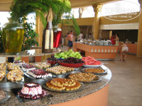 Но сразу одели браслеты и предложили пойти пообедать. Еда достаточно разнообразная и много вкусных блюд, главное всегда есть свежие овощи и фрукты.