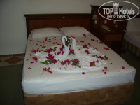 Находился в этом отеле с 27 августа по 3 сентября с супругой. Прилетели в аэропорт около 17 вечера, потом быстро переместились в автобус от Анекс тур и поехали. Как только тронулись, Гид начал своё представление, мы приехали не в Турцию а в Египет и едим работать, а не отдыхать и т.п. По приезду в отель Гид начал попрошайничать на чай, что водитель молодец хорошо привез и надо помочь ему накопить на права. Ехали очень долго более трех часов до отеля (хотя при желании до отеля можно доехать за 1 час, убедился в этом когда ехали обратно в аэропорт). Пришли на ресепшен, встретили нас наверное обычно, мы показали им наши ваучеры и паспорта, а они в свою очередь дали нам ключи от номера. Носильщик схватил нашу сумку и потащил ее до автобуса (работа у него такая, кричали вслед нам на ресепшине). Поднимались на автобусе в горку минуты 2-3, потом пошли в номер я дал носильщику 1 бакс он не стал брать, я дал 2 бакса он опять не взял, потом 3, что вы думаете....опять не берет и в тоже время не уходит стоит возле двери и ждет..., я достал 5 баксов, дал ему, он взял и свалил, Урод какой-то(надо было пинка ему дать)! Номер попался хороший с видом на море, очень красиво! (за номер не доплачивал).