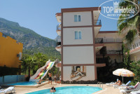 Прилетели рано утром...В 7 утра были возле отеля. 10 баксов в паспорт и мы сразу поднялись в номер,хотя этого можно и не делать...как потом мы разобрались номера все одинаковые...вопрос только какие виды вы хотате наблюдать из окна....соседний отель,хозяйственный двор с запахами соответствующими или горы....но тоже с запахом скотины...Все средненько....Кормили на уровне.....не скажу что супер,но голодными не ходили...пару раз была протухшая фасоль и салат из картофеля кислого......но это на любителя )))) Водка, джин......отстой...мой совет не ленитесь переть все из дютика.....пиво ,говорят что туборг...но пить можно..к тому же оно безалкогольное...Мне так показалось...Пляж у отеля дерьмо.....маленький кусочек на три отеля...справа речка-говнотечка с корабликами....слева вилла президента казахстана....лента ограждения висит,но туда ходят все кому не лень.....Мы после того как увидели плавающее гавно .....в зоне купания, перестали ходить на отельный пляж.....Напаситесь терпения и сил и ходите на дикий пляж.......на камни....слева его видно...минут 20-25....там чисто и красиво...на фотках он есть....Развлекали себя сами....Жаль поздно,но успели познакомится с веселыми людьми из Челябинска,Перми,Питера.....Если бы приехали все вместе....то отказала бы печень...а так 3 последних веселых дня....Под конец очень хотелось мяса...Ходили в кафе (направо) Напротив отеля "катамаран". Шашлык+гарнир 5 долларов...пиво 4 бакса.....кола 3 бакса....Шаверма 2 доллара......Кальян 7 долларов....Короче все зависит от компании,и если такая попадется ,то на все моджно закрыть глаза...На жадность хозяйки,на хамство турков из отеля....на дерьмовую еду и пляж.....Под конец хотелось домой.... Короче итог.. 3 звезды - это 3 звезды...бывает и хуже....Если ехать за солнцем,морем то пойдет.....Если для развлечений ,то это точно не то место...не то чтобы дело было в отеле....сам Бельдиби...нищая деревня.....сами делайте вывод....А так нормально....Под конец застряли с вылетом ...часа на 4....запасайтесь водой.....в аэропорту все дорого