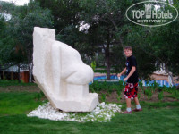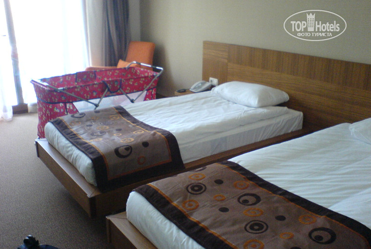 Ехали на свой страх и риск, зная, что отель только что ввели. Мы с мужем и сын 14 лет. Дали номер на фото с детской кроваткой и раздельными для мужа и жены кроватями. Вещи, мы несли сами и при заселении и обратно. Причем на чемоданах был написан номер комнаты, но через час ожидания муж сходил и принес сам. Далее после шока от увиденного номера мы пытались с 14.00 до 21.00 поменять номер, или хотя бы что бы принесли раскладушку. На ресепшене отказывались воспринимать русский, английский, немецкий. Ни деньги, ни уговоры не помогли. Кончилось это тем, что сын с мужем пошли спать на пирс, благо инфраструктура шикарная, и лежаки как диваны, а я пошла в бар успакаивать нервы бэлис, компари, кондитерка, мороженое все в неограниченном количестве. Еда вообще супер особенно греческий, итальянский и индийский ресторан.Следующая фишка отеля нестандартные фигуры разбросанные по всей территории к которым я так и не привыкла и лучше их не видеть ночью. Мои мужики развлекались. Отель зеленый, хотя и новый, половина номеров в корпусах выходит на стройку, но нам повезло у нас был вид на бассейн. Запаситесь побольше юмором и хорошим настроением когда едите в турцию, тогда вас не постигнет разочарование.
