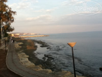 Отель располагается на 2-ой линии от дороги, что даже хорошо. Небольшой променад 5-7 мин. с колясками и вы на море. Есть специальные съезды.