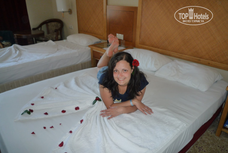 Номер достался хороший, с видом на бассейн)) уютный, чистенький, в общем претензий не было.Питание тоже понравилось. Мы с подругой вообще не много едим, так что нам всего вполне хватало. Было разное мясо (курица, индейка, говядина), рыба, на гарнир тоже было что выбрать, также много различных салатов и овощей. Из фруктов давали арбузы, дыни, апельсины, грейпфруты и яблоки, а уж сладостей было полно!! но так как я их не ем особо ими не интересовалась.