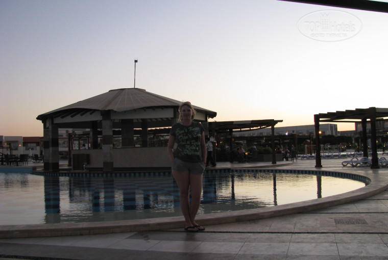 Территория- круглая,если так можно сказать, простор для взгляда.Посередине два бассейна больших. Один холодный ( около бара), другой - теплый.Внутри здания бассейна нет.Горок нет ( есть в соседних отелях небольшие- Sunrize Mamlouk. Sunrize Garden и Отель Титаник с платным аквапарком через дорогу, метров 30-40, совсем рядом).Растительность- ну не очень много, но есть. В соседнем Gardene зелени больше.Но лично меня это не напрягало. Мест в тени достаточно и около бассейнов и на пляже.