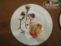 С балкона открывался изумительный вид на бассейн. Кстати, бассейн подогреваемый. Читал до этого, что подогревается только одна часть бассейна, но личные наблюдения показали, что вода тёплая во всём бассейне. (Подогреваемый бассейн - тоже принадлежность к 5*, так же как и свой теннисный корт.) Помимо теннисных кортов на территории Topaza есть волейбольная площадка, поле для футбола, большие шахматы, детский клуб, детская площадка, пинг понг, бильярд и столы с мини футболом,- хорошая альтернатива отдыху возле бассейна. Хотя и возле бассейна места хватало всем. В шаговой доступности от воды находятся два бара. Один с напитками, другой - снек бар, в котором готовят разнообразную еду, от печени на гриле до сладких пончиков. Всё вкусно. (В день отлёта, когда срезали браслеты, нам выдали талончик на обслуживание в снек баре, так нам так понравилась еда, что мы даже не пошли на обед в ресторан. Больше того, взяли немного еды с собой, так что завтракали мы в России блюдами Египетской кухни.) Описывать меню я не буду, но оно внушительное, от простого пюре до тушёных морских гребешков с креветками и крабами в соусе. Все рестораны сети Golden 5 хороши и в каждом есть своя изюминка. Лично мы завтракали в Sapphire, обедали, в основном, в Emeralde (Шеф повар приглашал, он в прошлом году работал в Clube), а ужинали в Clube (Кстати, пообщавшись с шеф поваром ресторана Clube, узнали, что продукты во все рестораны сети привозятся одинаковые а меню - это личная фантазия шеф-повара ресторана. И что "верблюжатины" в Хургаде нет, её готовят северней, в Каире. Так что любителям экзотики на заметку - ни в одном ресторане Хургады вам не подадут верблюжьего мяса - это говядина, пусть и очень хорошо приготовленная.) Про еду вроде всё.