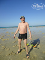 Море - холодное, в первый день даже не купался. Ветер. Купающихся за всё время было по пальцам пересчитать. Бабулька у моря сказала вода 14 градусов, термометр с собой привезла. Яндекс показывал температуру воды +21, гисметео +15, перед вылетом смотрел. Учтите это, знал бы – не приехал. Хотя, если есть в море кораллы, а они греют море – то море тёплое, нет кораллов – море холодное. Об этом вам будут рассказывать и о райском острове и острове Махмея, кажется, одно и то же. Не ездил. На море, корабле тоже ветер и холодно. Провёл рекогносцировку, пиво бутылочное только в баре у моря - рекомендую. В море прилив-отлив, сантиметров 50. Море обнажается и можно походить (смотри Google Earth), морских тварей поискать, они среди камней и под ними днём прячутся, пофоткаться с ними. Ракушки, какие то чёрные звёзды с отваливающимися щупальцами, шипастые моллюски, что то типа креветок встречалось. Среди камней лучше ходить в обуви. Кораллов в море у отеля нет, рыбки белые, каракатица на дне замаскированная встретилась, это поплавал вокруг островка, где все отелевские в море входят после пешего перехода к морю. Скучно. Для купания с маской надо идти (плыть) направо, к концу пирса соседнего отеля, там народ рыбок с пирса прикармливает, вот их там много разнообразных и разноцветных. Вплывать в стаю мелких цветных рыбок движущихся по кольцу как в большой воронке, просто передача “National Geography”! Дальше после пирса много ежей в камнях на выходе из воды, встречаются кораллы. С берега на пирс не пустят (другой отель), но во время отлива подняться на пирс по лестнице с моря без проблем. Туда, далеко за пирс, в последний день пошёл пешком, был отлив, обратно плыл, так бы каждый день. Но много или мало, купался каждый день, за исключением первого.