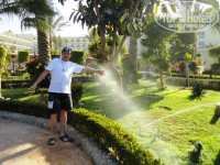 Большой автобус и ВСЕ в ле Жардин. Радует. Народу приехало много, расселялись долго, на стойке оформляющий был один (плохо). Кто то ускорял для себя этот процесс всем известным путём. Попытался нахаляву отжать себе, очутился в конце очереди, манегер сам подзывал. Денег не дал, окно с балконом (сидеть там вечером в куртке из за холода?) оказались с видом на соседний отель этой же сети, который слева по входу. Влево вид на дорогу, вправо - море. Бакс носильщику (просто так не уйдёт), если не сможете без него обойтись. Сейф работает, фен для дочки, кондиционер помог по ночам, горячая вода - всегда, только плитка кафельная коряво уложена, да краска на двери местами облупившаяся. 2 бутылки по 0,6 питьевой воды от уборщика каждый день. В номере не поросячили, поэтому от уборки, в основном отказывался, не грязно, чего будет чужой чел меж моих вещей ходить? Брал утром, когда уходил на море, в коридоре у уборщика 2 бутылки воды каждый день, бумагу по необходимости и всё. Один раз сказал убраться, оставил на столе 5 египетских рублей. Детского восторга от ежедневных сердечек и лебедей не испытываю.