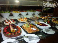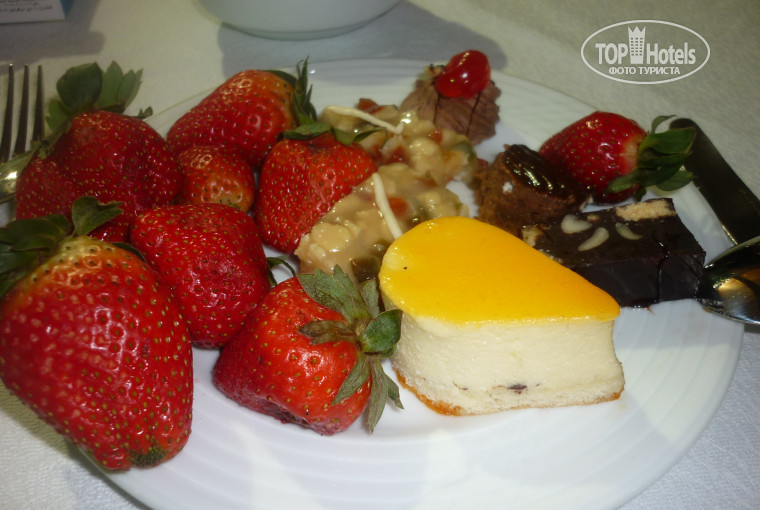Ну разумеется, сыр, йогурты, выпечка, французские тосты (объедение)))), овощи, фрукты и т.д. и т.п. На обед и ужин всегда курица, говядина, рыба по разному приготовленные, но всегда на одном и том же месте, точно не ошибешься. Также готовят сендвичи и макароны, при тебе из того, что сам выберешь. Фрукты, овощи, сладости, выпечка - ну просто завались))))). Несколько раз были креветки и кальмары. Устраивали вечера "живой кухни" - на гриле жарили колбаски, котлетки курочку. Мороженое на обед и ужин без ограничений. Бар на пляже - это нечто: бургеры с настоящей говяжей котлетой, пицца, шаурмы, рыбка в кляре, мммм.... Бары все бесплатные, бармены также улыбаются. В лобби-баре коктейли всякие вкуснячие делают. Были 2 раза в китайском ресторане, и 1 раз в итальянском. Китайский мне больше понравился.