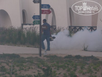 Впервые видела фумигацию территории. Это такой аппарат в руках у сотрудника , который изрыгает поток дыма для людей безопасен, а комарики погибают.