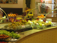 Супов мало, но вкусные. Горячее: рыба, птица, мясо, кальмары, овощи запеченные, различные гарниры. Овощи, салаты, сыры соусы и т.д. И много много много сладенького и фрукты (дыня, апельсины, мандарины, лимоны, лайм, бананы, финики, гуава, яблоки и кака (незрелая хурма - бе). Столы от ассортимента не ломятся, но уже на второй день пребывания понимаешь, что еды на всех хватает, все очень свежее, вкусное и полезное, много блюд приготовленных на пару. А больше вовсе не нужно.