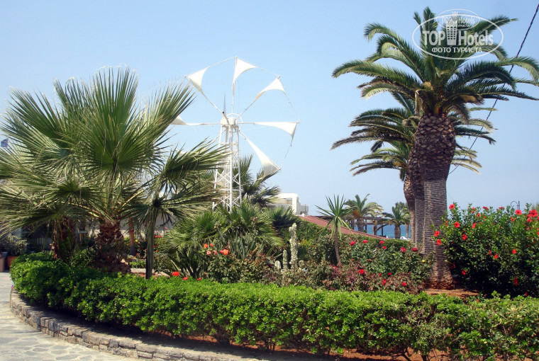 Расположение отеля тоже удачное - можно прогуляться по деревушке 15 минут вдоль сувенирных лавочек - и ты уже на автобусной остановке, оттуда - хоть в Херсонисос, хоть в Ираклион, автобусы ходят по расписанию, цены вполне умеренные. Также пешком ходили на раскопки дворца Малии - конечно, далековато, но, в качестве долгой пешей прогулки - вполне, тем более что Дворец в Малии - не туристический объект, там все тихо-спокойно, а перед обратной дорогой можно там же в море искупаться.