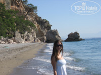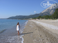Добрый день. Отдыхали в этом отеле в конце октября-начале мая год назад. Прочитала много отзывов, решила оставить и свой. После пятизвездочных отелей в Египте (в который я влюблена), этот отель, конечно не похож на отель совсем. НО! Если ваша цель - отдохнуть от мегаполиса, насладиться природой, общением с близким человеком, то и это место поможет вам в этом. Сам поселок очень тихий, это совсем не тусовочный край, то есть если вы хотите отдыхать активно, то это место оставит у вас не очень хорошие впечатления. Сначала нам показалось, что мы совсем не в Турции, что это действительно один из курортных поселков Крыма...сам отель тоже показался очень маленьким и скромным, но опять же после пятерок в Египте так и есть. Но с самого первого дня мы настроили себя на то,что самое главное - это отдых и ничто не сможет его омрачить. Заселение прошло без каких-либо задержек, номер нам дали в блоке Д, обычный номер, сантехника не новая, постельное белье тоже, но все чисто, все убирали и меняли вовремя, без задержек. Вид на горы очень умиротворял. Вокруг очень красиво...если честно очень поразил вид растущих на деревьях прямо в отеле апельсинов, лимонов, гранат и т.д. Недалеко от отеля есть большая апельсиновая роща, много цветов, все благоухает. Горы красивые, воздух свежий, море чистейшее. По поводу крупных камне-это правда, подумайте об обуви заранее. Очень коасиво за диким пляжем, там есть совсем небольшая лагуна с бирюзовой водичкой. Питание среднее, никаких изысков нет, наелись фруктами вдоволь, их правда очень-очень много, из всего остального выбирали то, что по душе. Кушали 4 раза в день, голодными не оставались:) Персонал работал хорошо, обслуживали быстро, ненавязчиво. В принчипе было чисто, но сами столы, стулья, скатерти можно было и обновить. Мы с парем искаи спокойного отдыха после бури событий в Киеве, поэтому с радостью загорали, бродили часами по пляжу, отсыпались, съездили на экскурсию (в Памуккале -очень понравилось) и остались довольны. Экскурсии действительно смело можно брать с улицы.