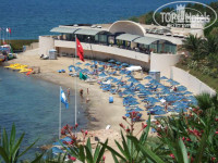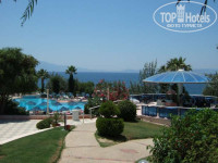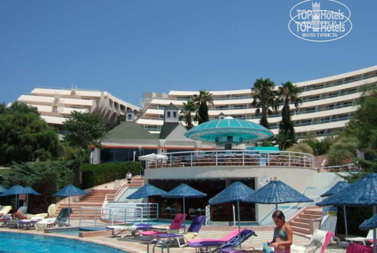 Только что прекрасно отдохнули в этом отеле! Территория очень красивая, особенно если помнить, что создана на голой скале, все чисто и ухожено. Номера просторные, убирались ежедневно. Пляж, конечно, так себе, но слава Богу, что он вообще есть, почти у всех соседних отелей платформы. Зато народа на пляже не так много - все иностранцы сидели целыми днями у бассейна. Убирали пляж регулярно, море вообще чистое, хотя временами и прохладное по утрам. Русских и беларусов в отеле было где-то 25% (человек 200). Кормили просто на убой, гораздо лучше, чем ожидали - и много, и вкусно, плюс всякие приятные мелочи типа мороженого или шашлыка. Импортных напитков, кроме Бейлиз, не заметили, но все время было неплохое местное вино, коктейли и т.д. В отеле семь баров, два-три открыты всегда, а вечером - почти все. Анимация, в общем-то, ерундовая, так как рассчитана на европейцев, а русский аниматор откровенно сачковал. Но мы обычно спокойно обходились без всех этих клоунад и конкурсов, так как ходили гулять в город (30-40 минут до центра пешком не спеша или 10 минут на долмуше). Кушадасы - милейший уютный городок, с набережной и крепостью на островке. Очень красивые виды на закат прямо из номера или с любого места на территории. В общем, отель - твердая четверка, как мне кажется. Без заметных недостатков, создающий атмосферу настоящего отдыха, расслабленности и комфорта. Всем его рекомендую для отдыха, в том числе с детьми, которых в отеле хватало. С оператором (ПАК-груп, Москва) проблем никаких не было, все прошло без накладок и особых задержек. Спасибо им и Турции! Обязательно приедем еще - когда-нибудь.