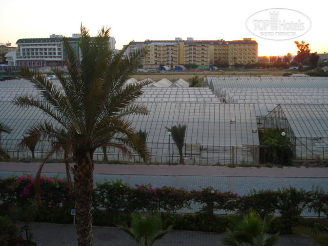 Уважаемые туристы! НЕ верьте фотографиям отеля в интернете-это все фотошоп. Вид из номера выходит на теплицы, на трассу или бассейн, но это еще ладно. А какой ужасный запах от теплиц, кухни и утром и вечером от бассейнов, их вообще не чистят. Пляж очень грязный в окурках, палках и прочим мусоре и вход в море очень ужасный кругом булыжники и можно здорово пораниться. Кормят ужасно, в основном одни овощи и безвкусные фрукты (арбуз и дыня), иногда дают так называемое мясо-чистой воды соя и за ним надо стоят в огромной очереди. Обслуживающий персонал на кухне, в баре достаточно вежливый и доброжелательный, чего нельзя сказать про ресепшен к ним можно даже не обращаться (будут либо игнорировать, либо если обратищься с просьбой грубо говоря "пошлют куда подальше"). Не берите экскурсии у отельных гидов не в коем случае, т.к. стоят они в два раза дороже, чем за территорией отеля, а сервиса и организованности нет.
