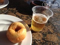 Есть можно только в ресторане (в помещении), на улицу еду выносить нельзя (никогда). Вход по очереди (!), что нас вообще злило. Из фруктов: бананы и апельсины, и еще какие то маленькие невкусные штучки. Из мяса: на ужин и обед можно отстоять очередь за курочкой, иногда на ужин дают немножко мяса или морепродуктов. Из напитков: все газированные напитки - как попадется, то вкусно то невкусно, у спрайта странный вкус, пиво норм, вино только в помещении ресторана на обед и ужин, на улицу выносить нельзя, соки юппи. Свежевыжатые соки - платные. Клубника и дыни - платные. И еще - у меня 2 дня было жуткое отравление (я не пьющая). Судите сами. А у моего МЧ - каждый день невпорядке с поход в туалет в течении 4-х последних дней. В баре на пляже есть вкусные гамбургеры, менее вкусные хотдоги, и безвкусные пончики (нужно добавить джема на них).