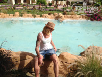 Отель большой, много цветочков, исскуственная речка, большие бассейны, детская площадка, аквапарк.