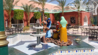 Отдыхали в этом отеле с 20.07.08 по 27.07.08 от Тез тур. Заселили часов в 6 утра на удивление быстро, денег не просили. На мой взгляд этот отель полностью соответствует заявленным 4*, первые дни мне казалось, что там можно заблудиться. Отель состоит из множества двориков в восточном стиле, которые сильно радуют глаз обилием красок и архитектурным строением. Каждый дворик имеет свой бассейн. Попадая в это дворец появляется настроение праздника.