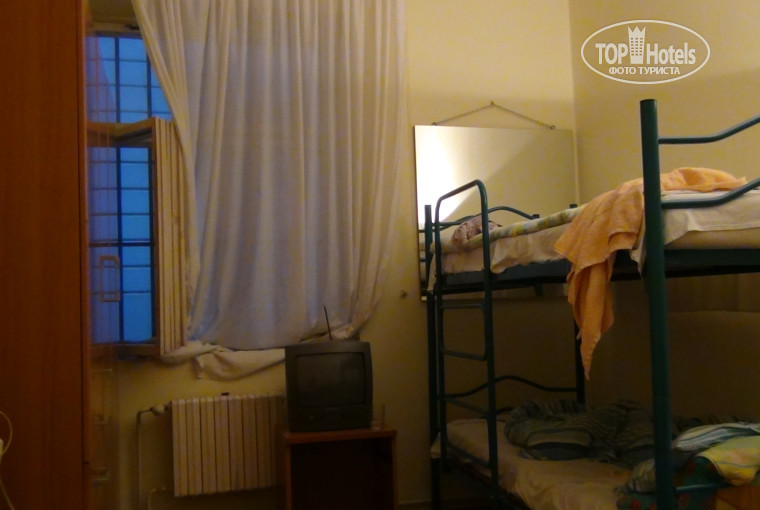 Встретил нас вежливый дядечка-администратор, быстро заполнил карточки и повел пыльным длинным коридором на задний двор дома, где в колодце из пятиэтажек ютился одноэтажный обшарпанный корпус нашего временного пристанища. Решетки на окнах, треснувшие стекла , в узком переходе ряды веревок с сушащимися полотенцами. В коридоре неказистые дверки. Дядечка показал нам на первую от выхода , после чего быстро ретировался, не дожидаясь, когда мы войдем.